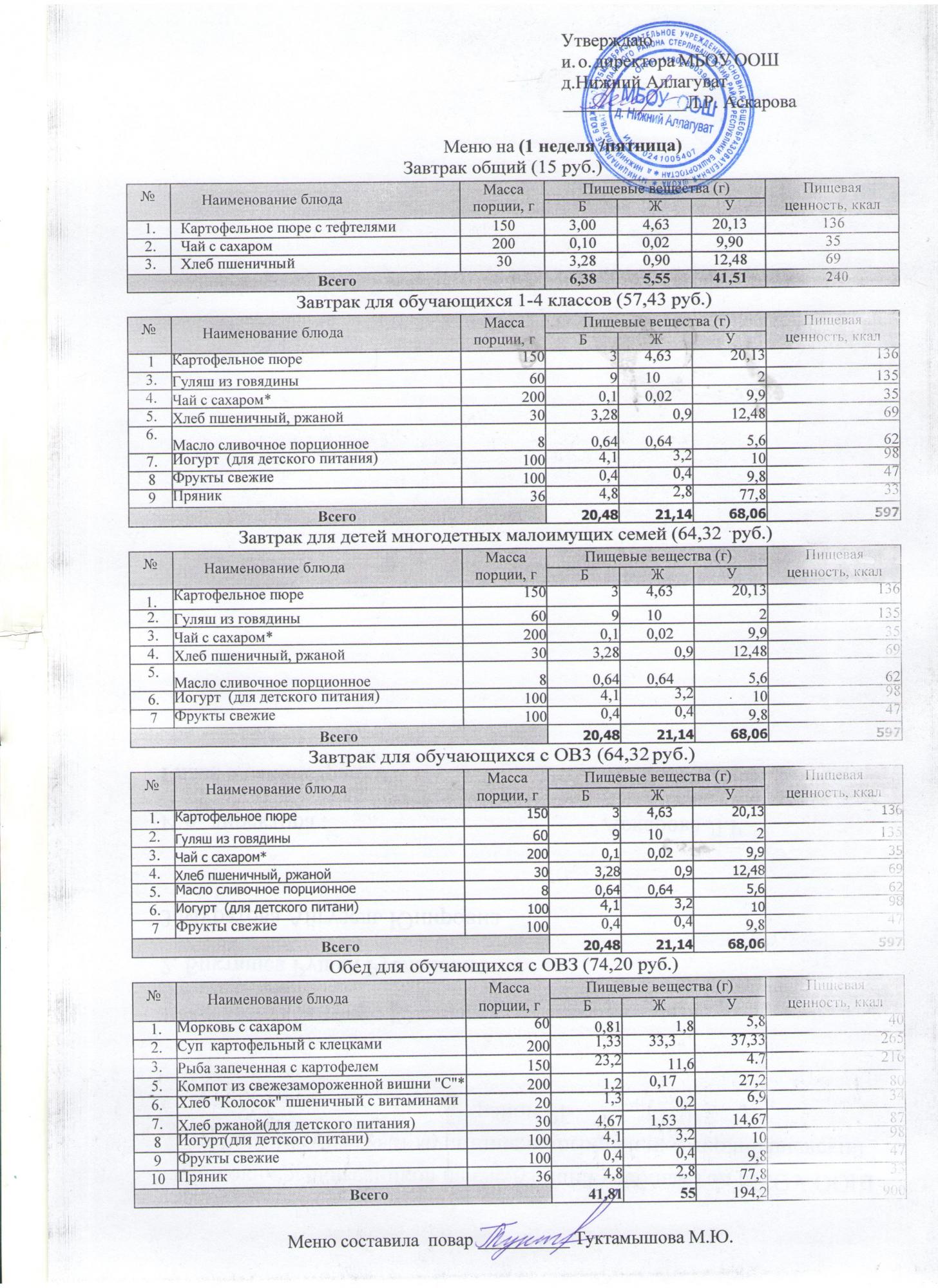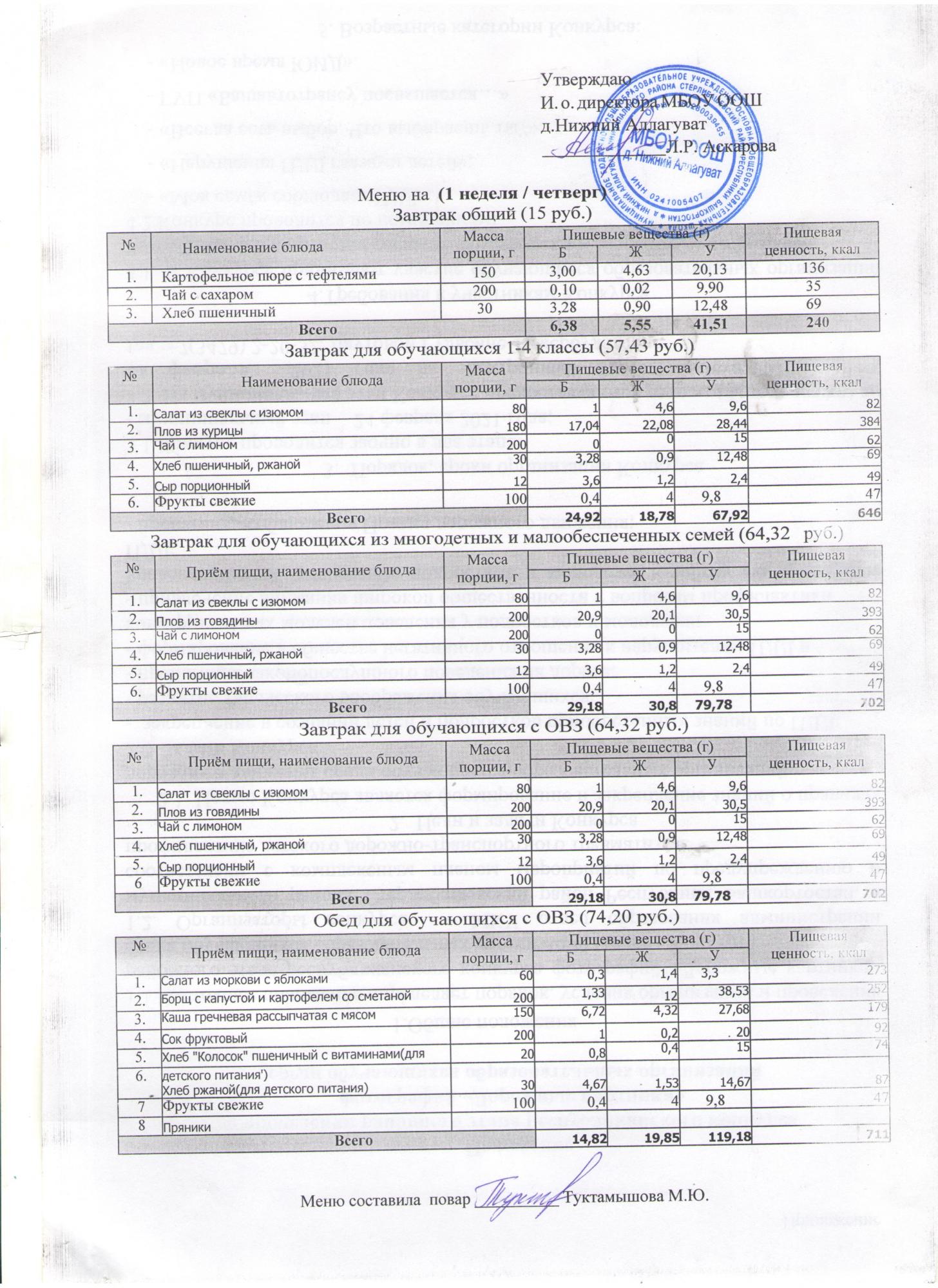Ежедневное меню с фотографиями